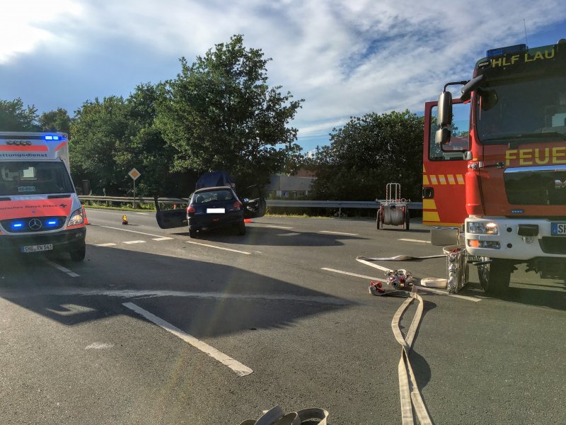 Die Kameraden der Feuerwehr Lauenau waren gerade damit beschäftigt, einen LKW für das anstehende Jugendzeltlager in Otterndorf zu beladen, als sie plötzlich ein lautes Krachen auf der in unmittelbarer Nähe liegenden Auffahrt Lauenau Süd auf die B442 hörten.