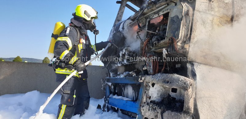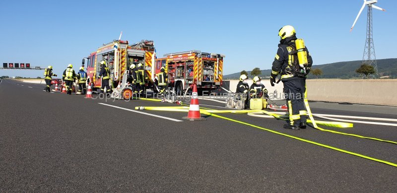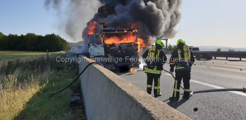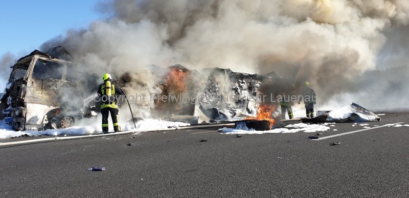 Um 08:52 Uhr wurde die Feuerwehr Lauenau zu einem Brandeinsatz auf die BAB 2 alarmiert. Bei Eintreffen der ersten Kräfte stand der komplette LKW bereits in Vollbrand. Sofort begannen die Löscharbeiten in zwei Einsatzabschnitten. Das Tanklöschfahrzeug setzte Schaumrohr, C-Rohre sowie unser Nebellöschsystem ein. Zum Einsatz kamen mehrere Trupps unter Atemschutz. Aufgrund des großen Wasserbedarfs, sind weitere Tanklöschfahrzeuge an die Einsatzstelle alarmiert worden. Weitere Mittel im Einsatz: Rollwagen Einsatzstellenhygiene, Rollwagen Schaummittel, Rettungsbühne, techn. Geräte und Wärmebildkamera.