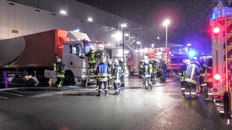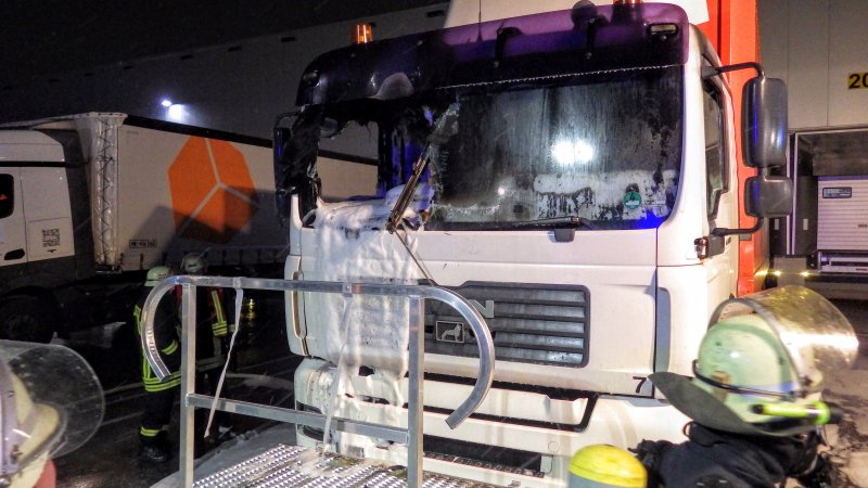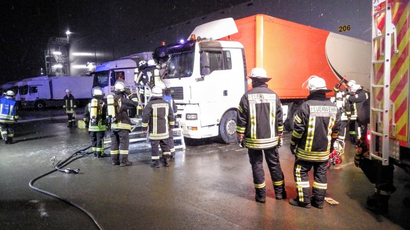 Ein Führerhaus eines abgestellten Sattelschleppers war stark verqualmt. Feuerschein war im Inneren sichtbar. Nach Aussage des Fahrers befanden sich keine Personen mehr im Fahrzeug.